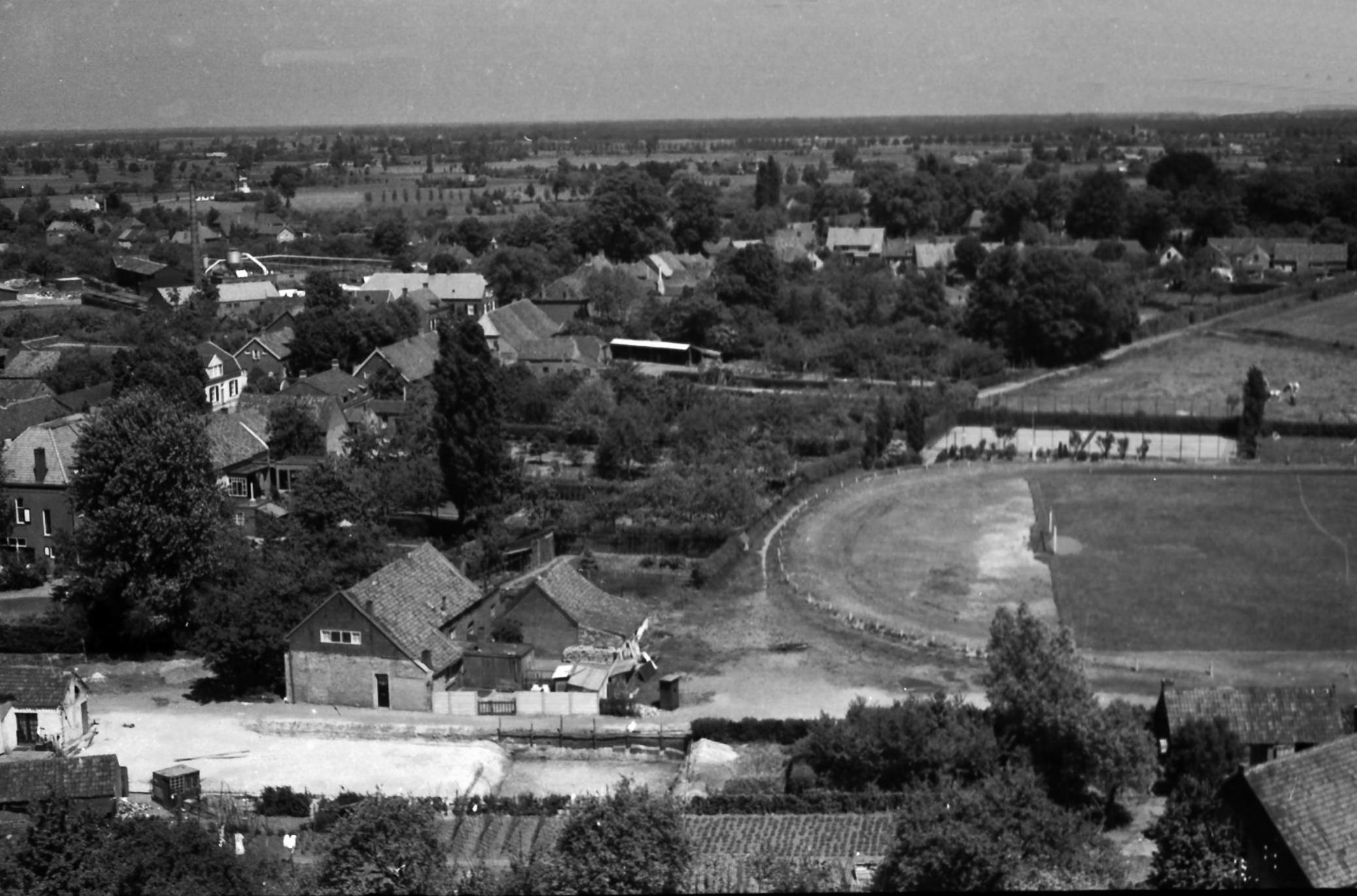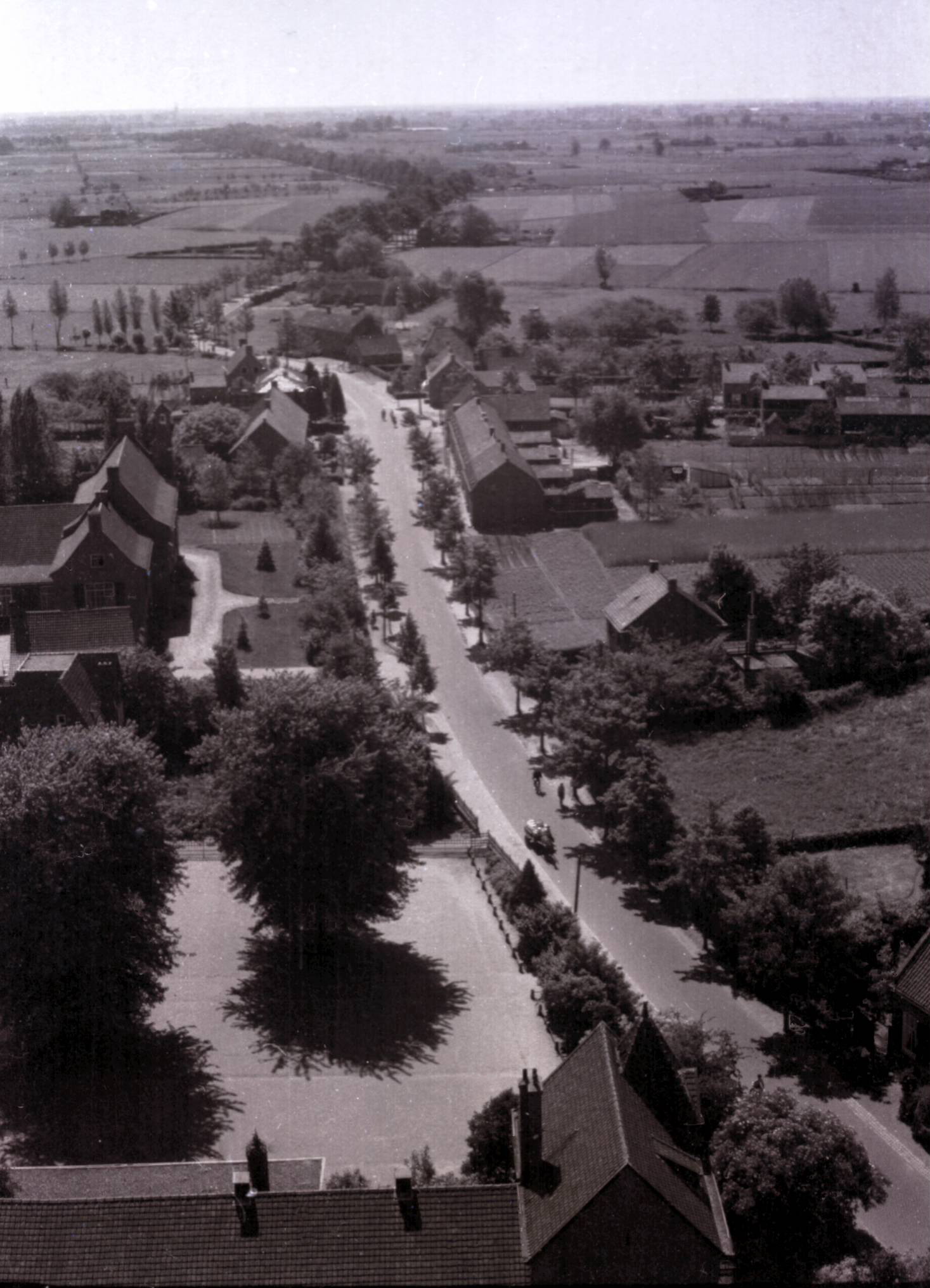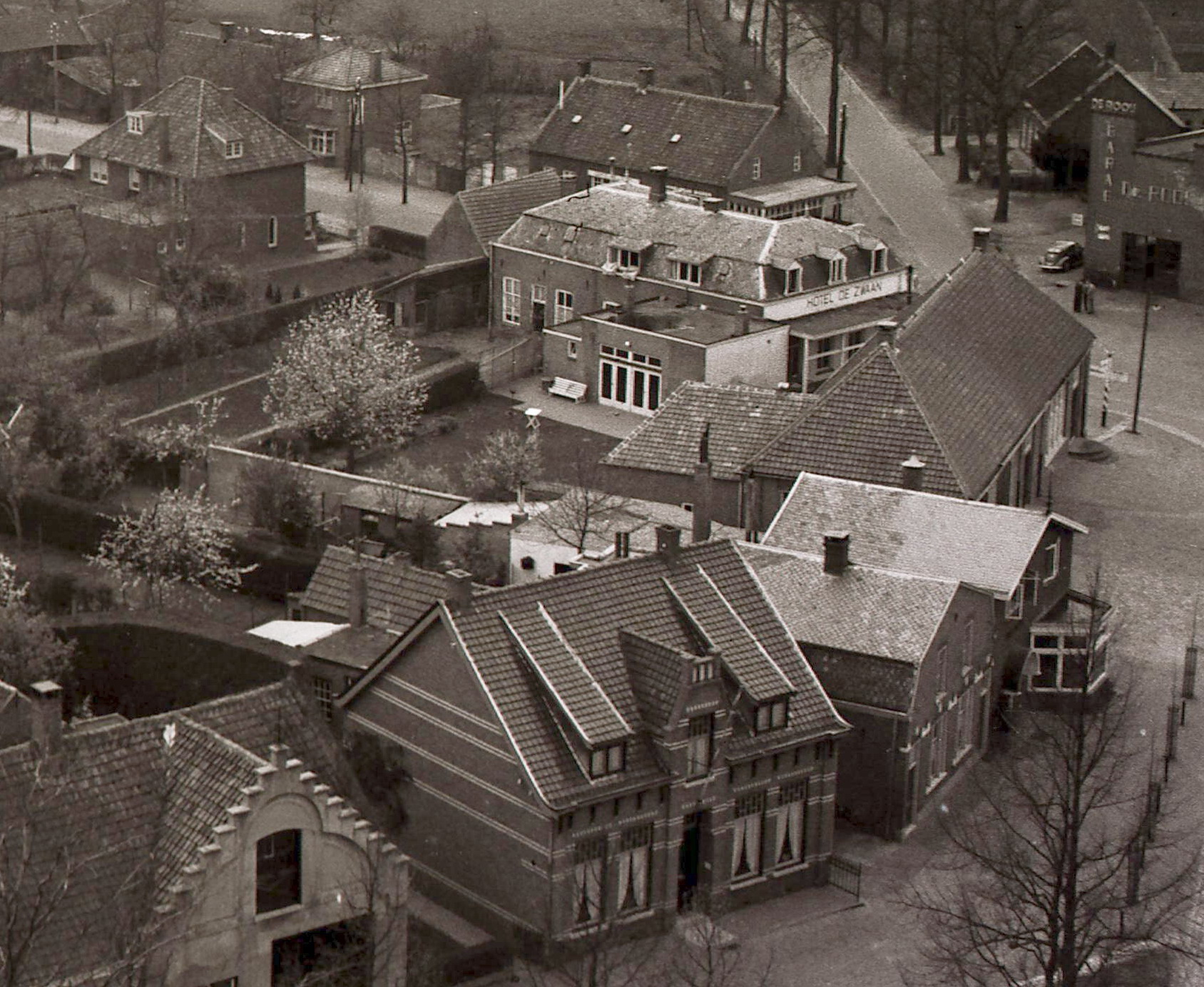 In het midden aan de linkerkant is De Vank te zien, het grote parochiehuis met