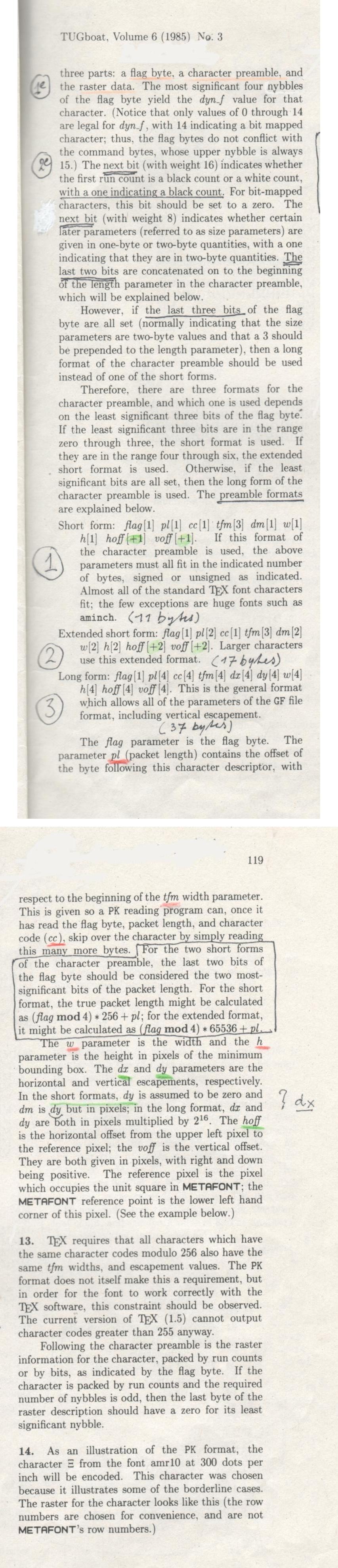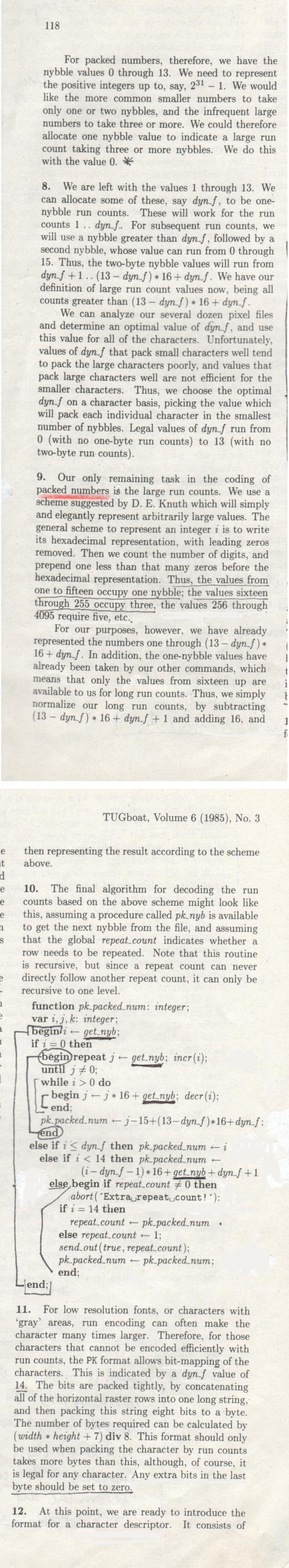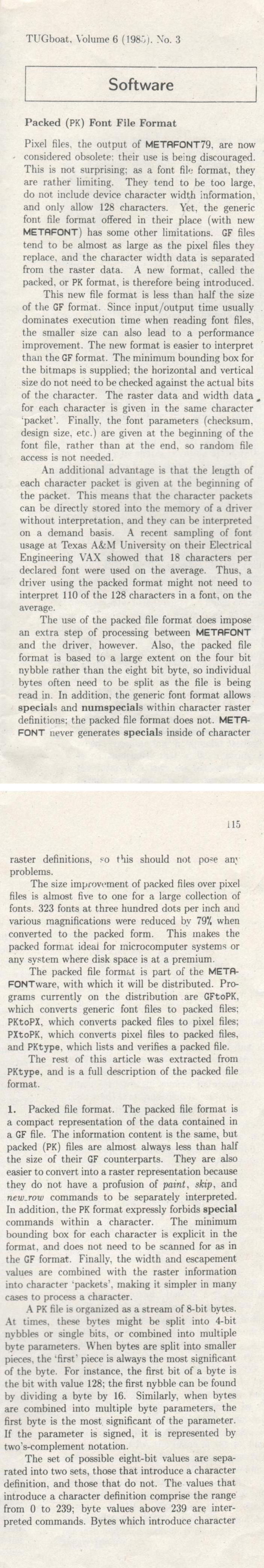 (PK) Font File Format, TUGboat, Volume 6 (1985), No.3, pag.