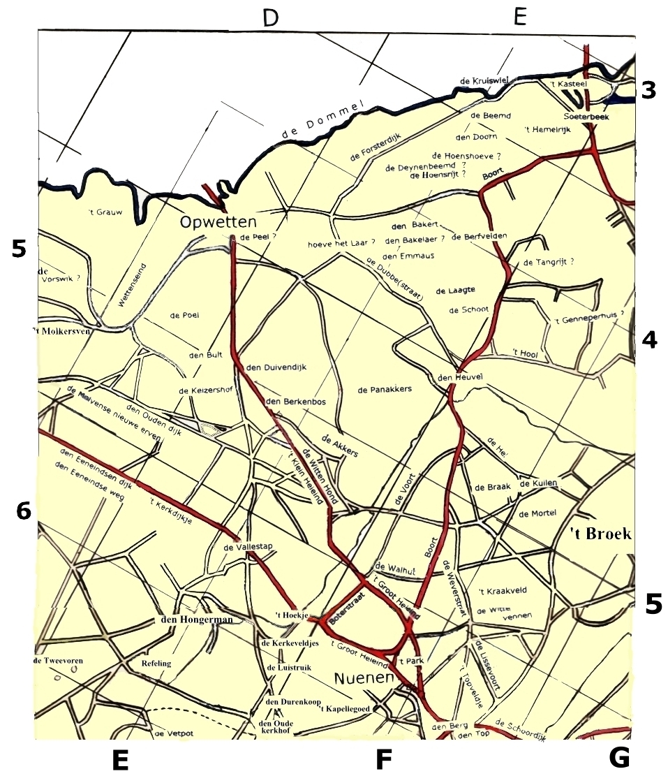 Vaerle (ook: Vaerlaer), De Scheerrijten, de Nuenensche Mortel, de Lissevoort en de Roosdonk.