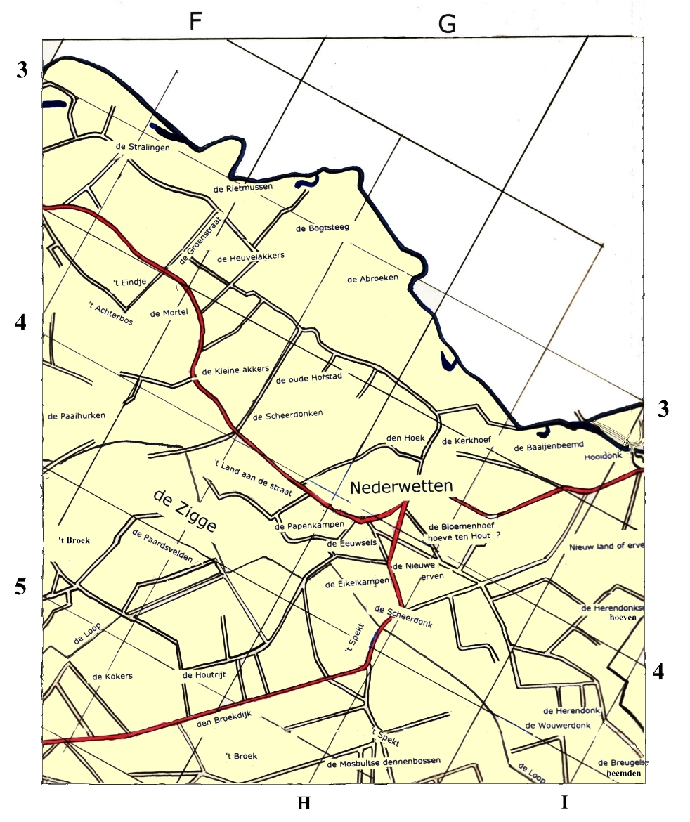 de Nieuwe Dijk, De Stad, Ole, De Roosdonk, Den Huikert (met de orspronkelijke betekenis van