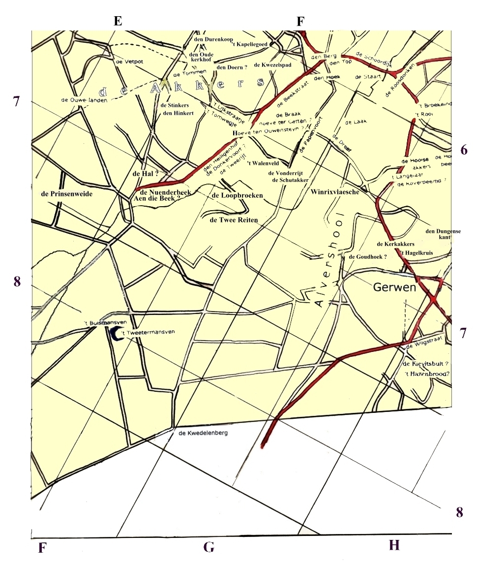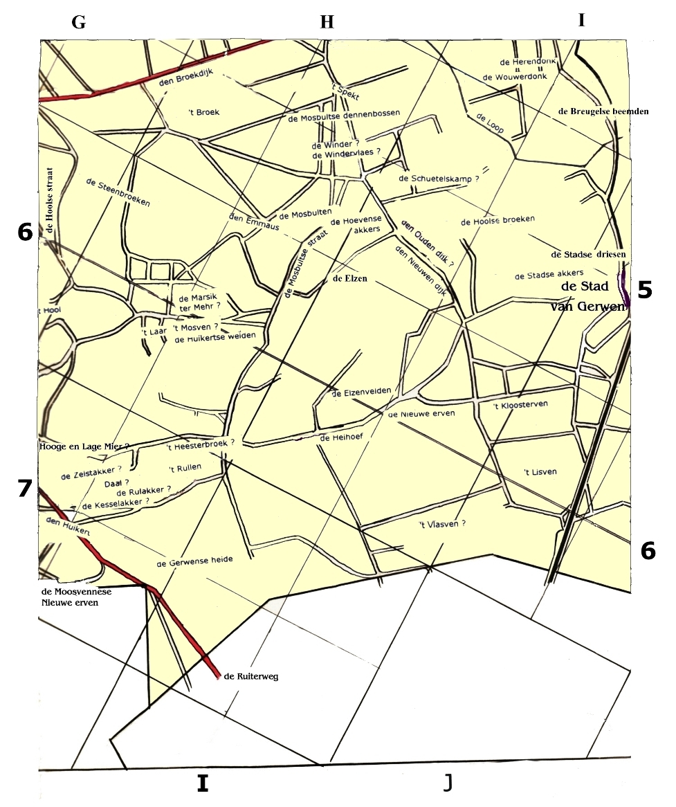 Frenken somt de namen voor de grotere uitgestrektheden op. Vooreerst voor Gerwen: