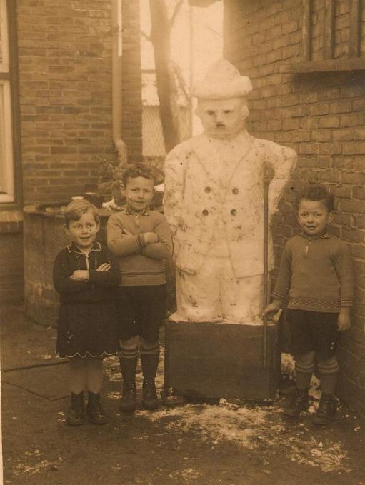 met mijn oudste broer en zus de sneeuwman escorteer. Op die foto kijk je naar de straatzijde, waar een hoek te zien