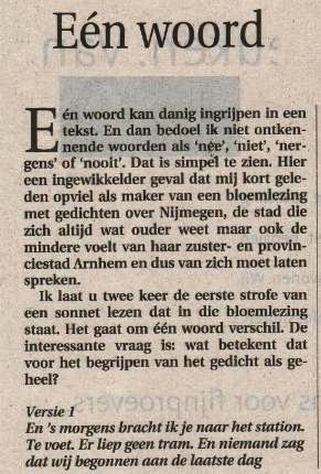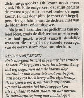 heeft willen reduceren. Ik geef hier zijn tekst uit de Gelderlander van