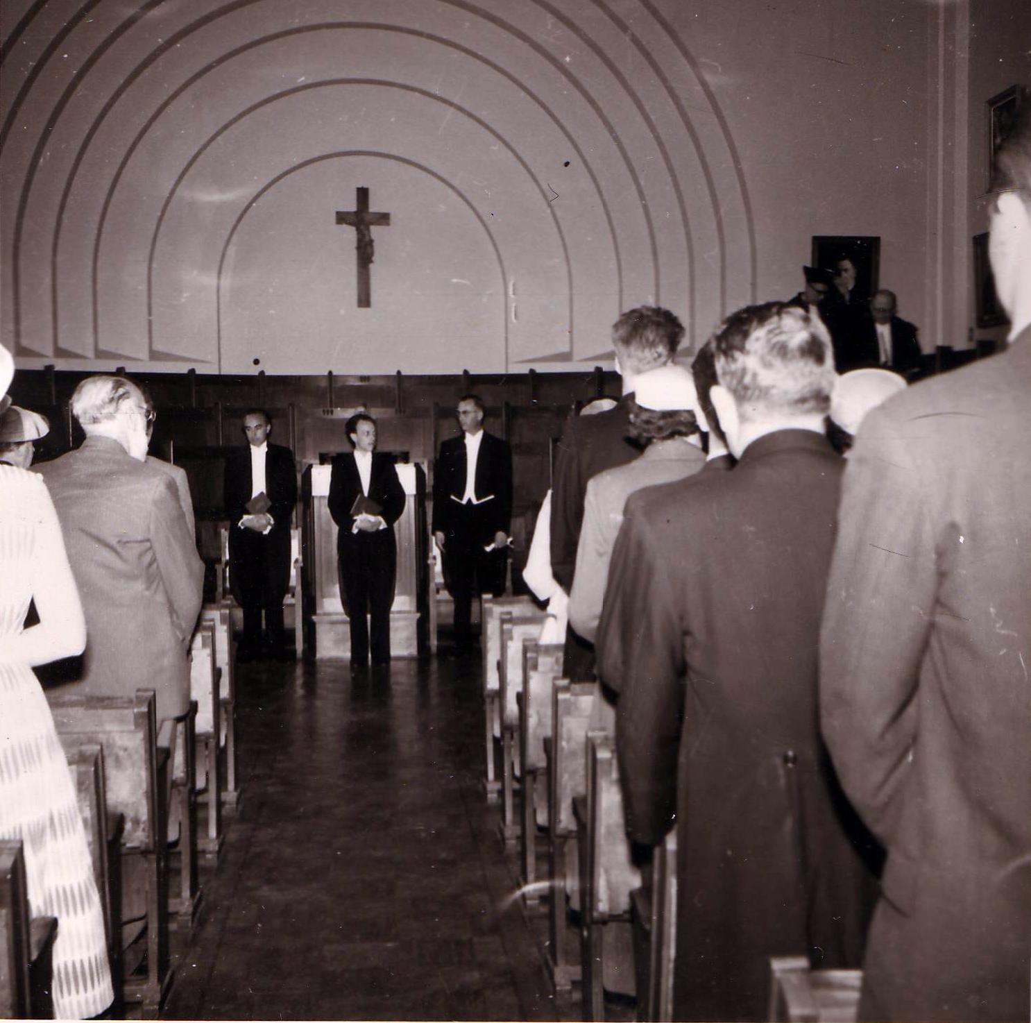 de zaal gaat verlaten voor beraad. De aanwezigen in de zaal staan nog rechtop.