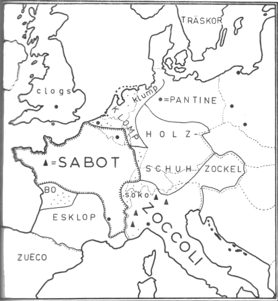zich hol houten schoeisel dat de voet omvatte. Dat nieuwe schoeisel verspreidde zich vanuit een bepaalde