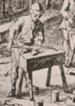 werkbank vastgekneld stond. Dwz bij het eerste serieuze begin van de klomperij, toen het
