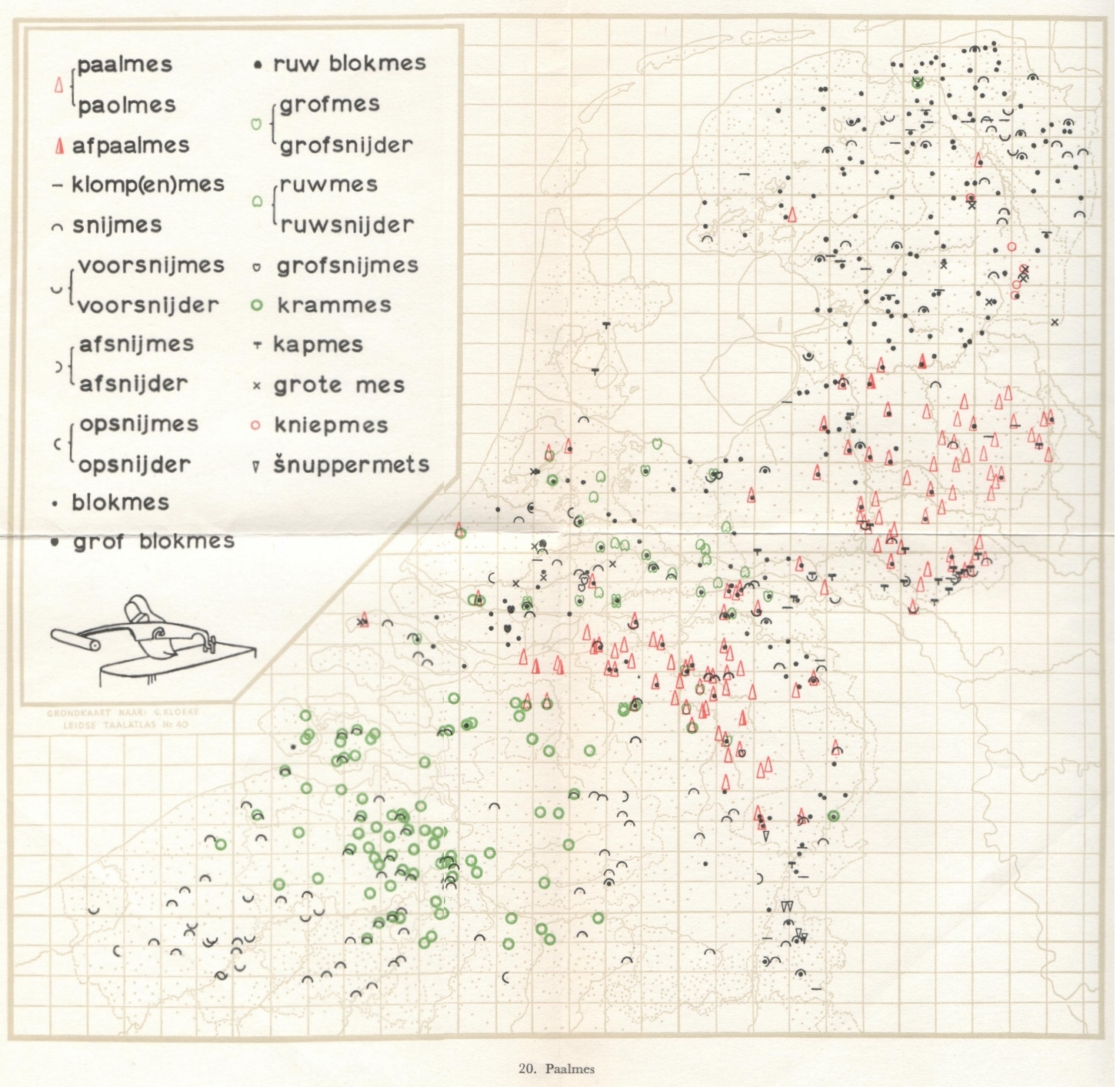 De kaart van de benamingen van het Paalmes in Nederland werd aan de Atlas als